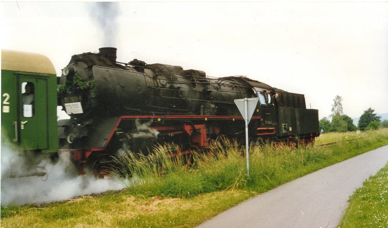 Abschied von der Strecke Wanfried-Eschwege: BR 50 hat vor wenigen Minuten Wanfried verlassen und dampft Eschwege entgegen, um 1991