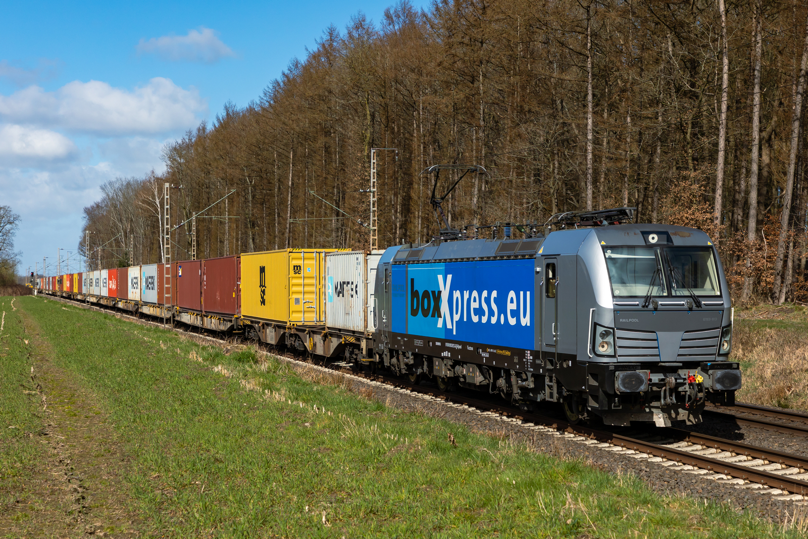 193 785-3 durchfährt mit dem leeren Containerzug den Haltepunkt Loxstedt nach Bremen. 29.3.26