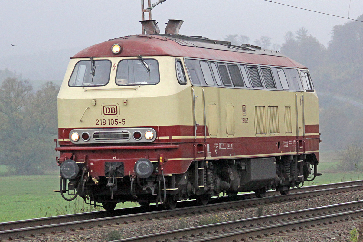 DB 218 105-5 am 11.11.2016  13:13 nördlich von Salzderhelden am BÜ 75,1 in Richtung göttingen