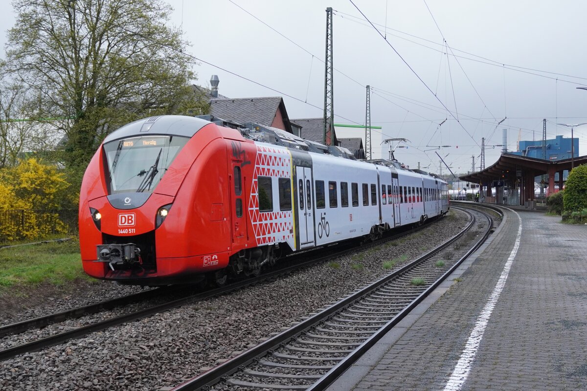 1440 374 rauscht mit einem Schneebärtchen durch Erftwerk in Richtung Köln.