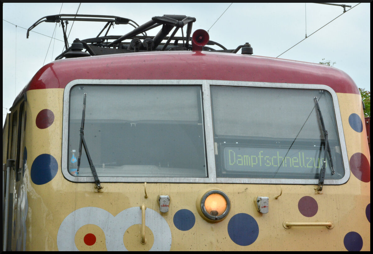 Die Elektrolok 111 057 (Smart Rail) beförderte am 18.05.2025 als "Dampfschnellzug" die Besucher des Lokschuppenfests in dreiachsigen Umbauwagen (Bauarten AB3yg & B3yg) zwischen Hanau Hbf und dem historischen Bahnbetriebswerk Hanau. Am Zugschluss hing die Diesellok 294 586-3 (KonRail).