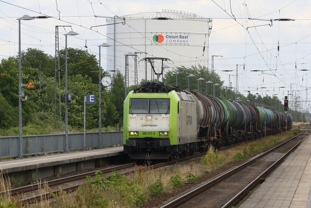 185 501-4 mit einem Containerzug bei Reilos am 14.10.2025.