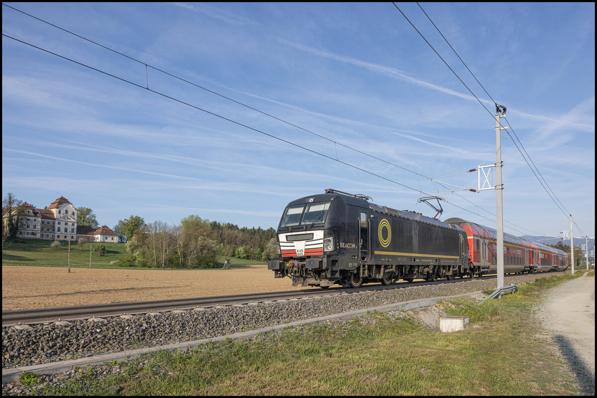 Mit neuen Ford Kuga beladen kommt die 193 658 gen Köln fahrend durch Alfter. 1.5.2019