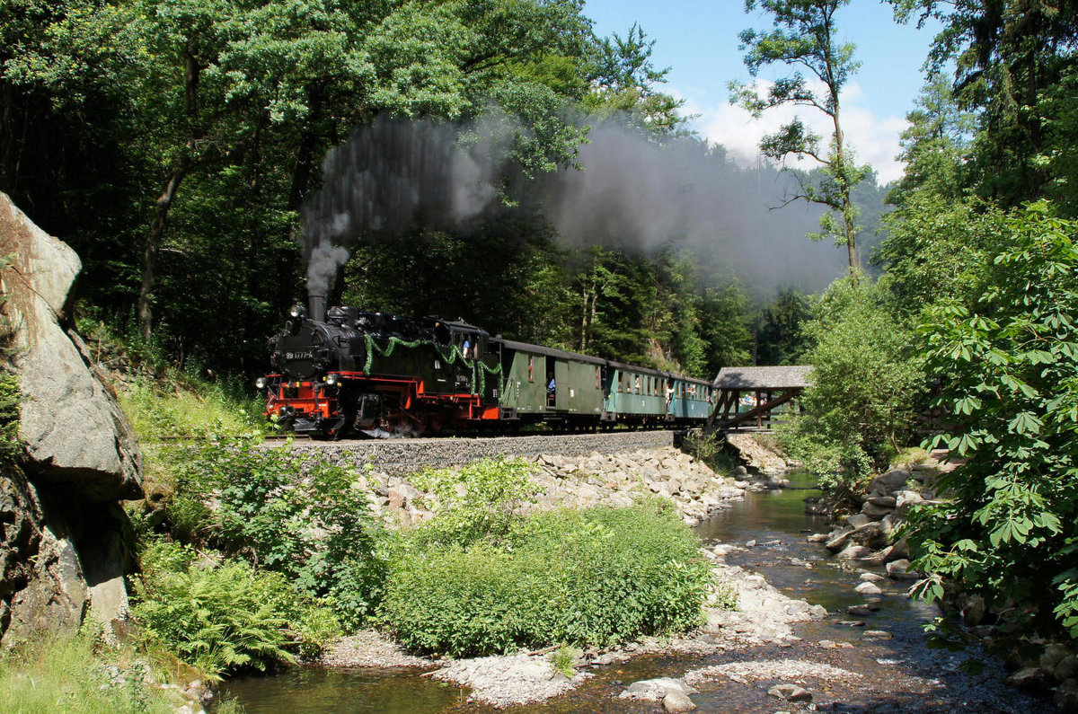 18.06.2017 - Eröffnung der Weißeritztalbahn auf dem oberen Streckenabschnitt zwischen Dippoldiswalde und dem Kurort Kipsdorf. 99 1777 im Spechtritzgrund an der Goldstampfe Floreg L.