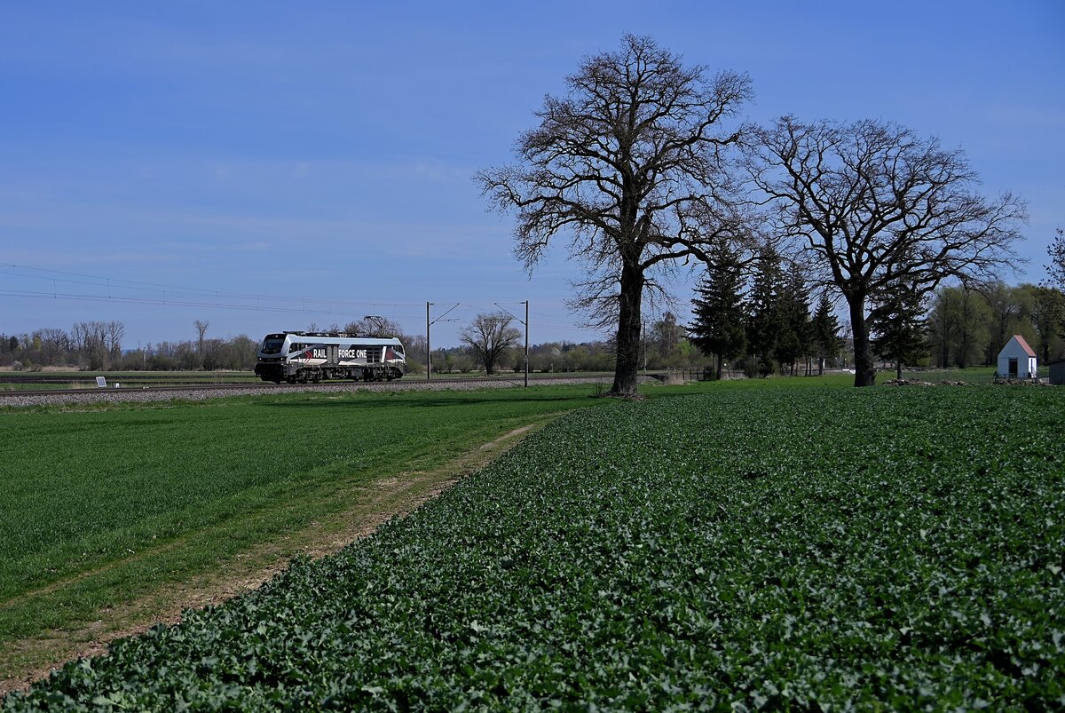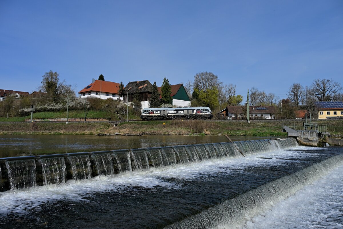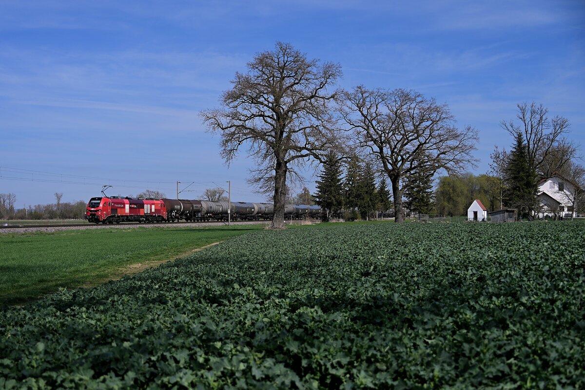 159 211 (90 80 2159 211 2D-RCM) der Starkenberger Baustoffwerke GmbH (SBW) am 24.2.2022 mit einem leeren Sandzug auf dem Weg von Saalfeld/Saale nach Kayna. Hier bei der Einfahrt Pößneck oberer Bahnhof.
