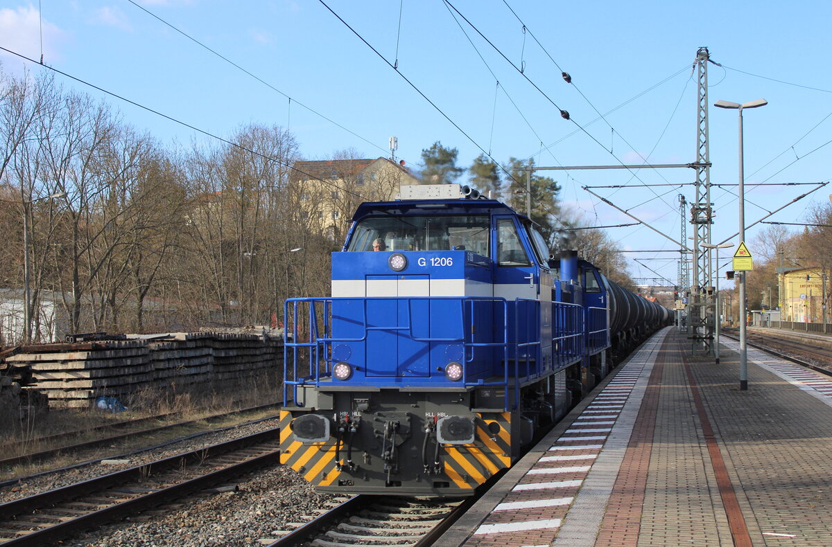 Kesselzug mit 187 117-7 fährt in Halle (Saale), Kasseler Straße/Europachaussee, Richtung Bft Halle Gbf Süd.