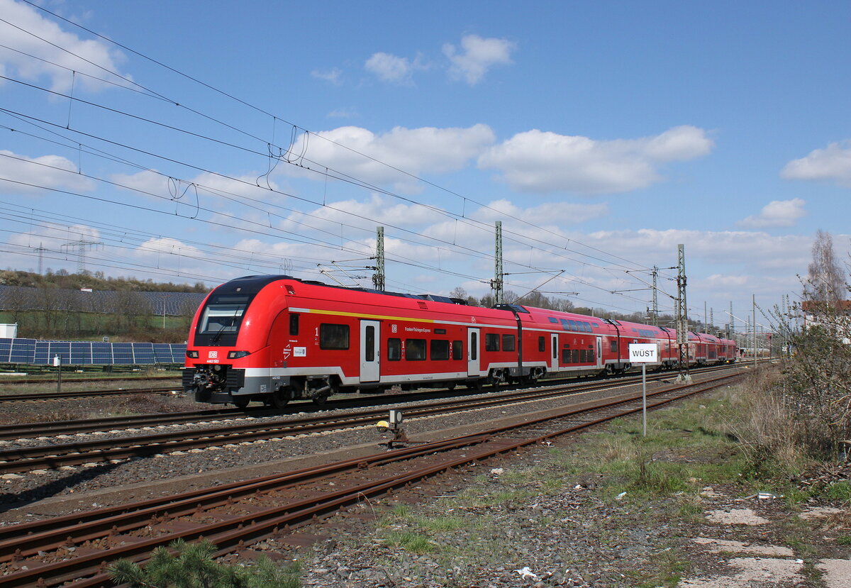 Der DB 4462 503 (94 80 4462 503-6 D-DB) für den späteren Einsatz als "Franken-Thüringen-Express" zwischen Nürnberg und Erfurt, war am 05.04.2023 in Gerstungen auf Tesfahrt Richtung Bebra.
