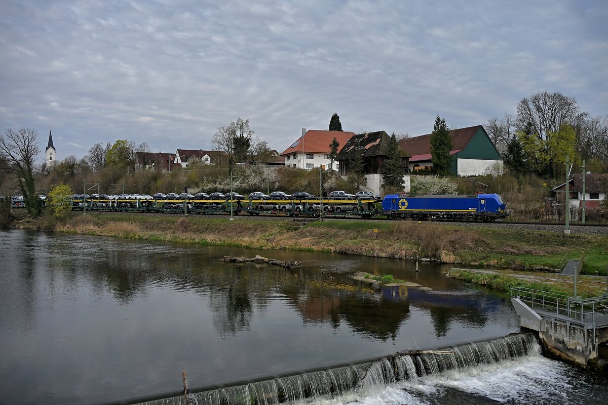 KLV-Zug mit 193 550-1 "Zwei Pole mit enormer Zugkraft" (Siemens Vectron) fährt am km 9,1 bei Schkopau Richtung Merseburg Hbf.