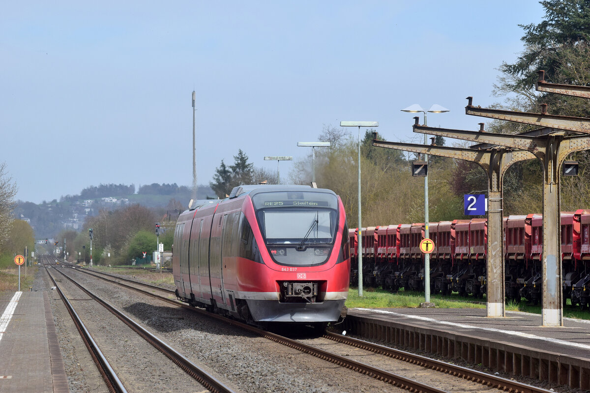 Blick auf den Verschubwagen von Windhoff für die Verladeeinrichtung der Tonverladung in Löhnberg. Dieser wird mittels eines Seilzuges bewegt. Die Seilzugvorrichtung ist im Gleis zu sehen.