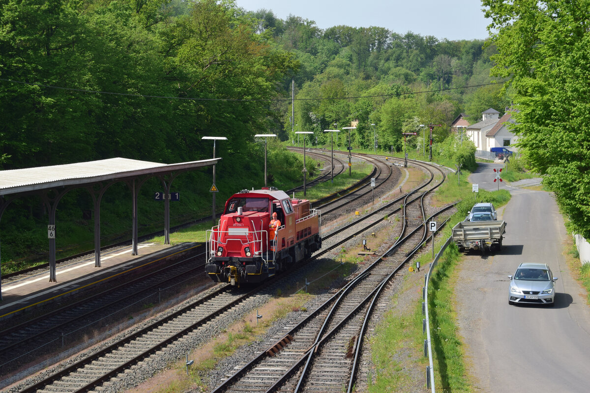 261 054-1 rangiert nun die Kalkwagen in eines der leeren Nebengleise.