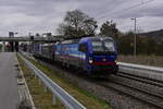 Eine BLS Miet 193 und eine 475 der BLS ziehen einen sehr langen Auto Walter KLV durch Weinheim-Sulzbach gen Hemsbach. 21.9.2021
