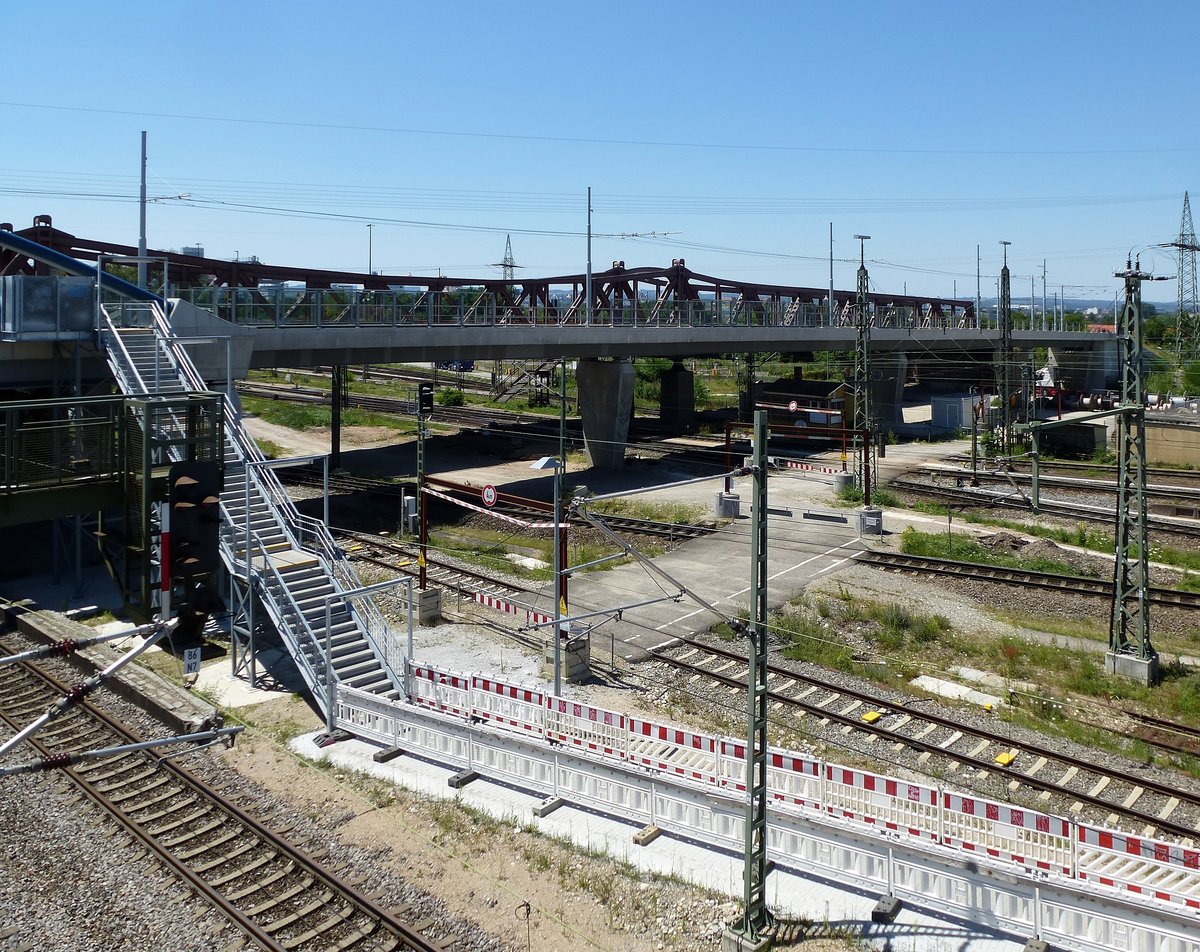 Weil am Rhein, neuer Zugang zu den Bahnsteigen von der Straßenbahnbrücke, eröffnet April 2018, Juli 2018