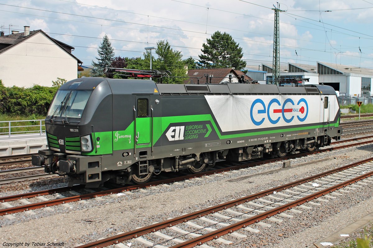 Lokportrait von ELL/ecco Rail 193 211 "Jimmy", als diese am 02.06.2018 im Bahnhof von Efringen Kirchen abgestellt stand und dort euf ihre nächste Leistung wartete.