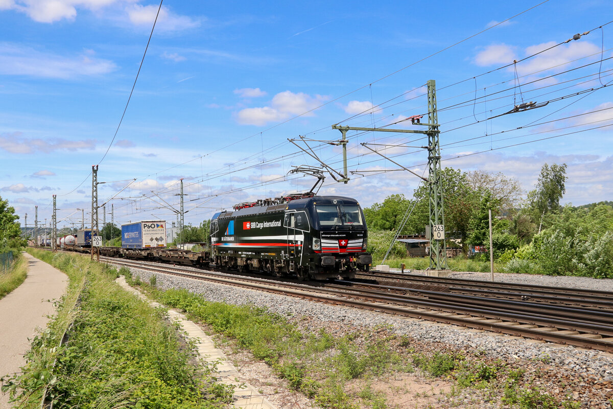 Die Br 193 659 fährt mit einem Güterzüg durch Eimeldingen Richtung Basel. Die Br 193 659 trägt die Schrift "Die Güterbahnen". Allerdings trägt sie diese Schrift nicht mehr. 27.05.2022