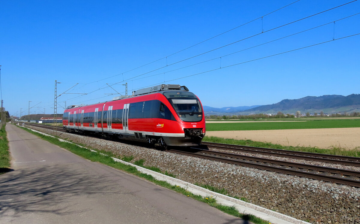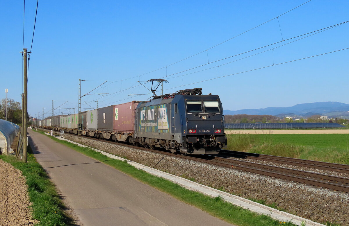 Hohberg - 4. April 2025 : 185 056 mit einem Gemichten in Richtung Basel unterwegs.
