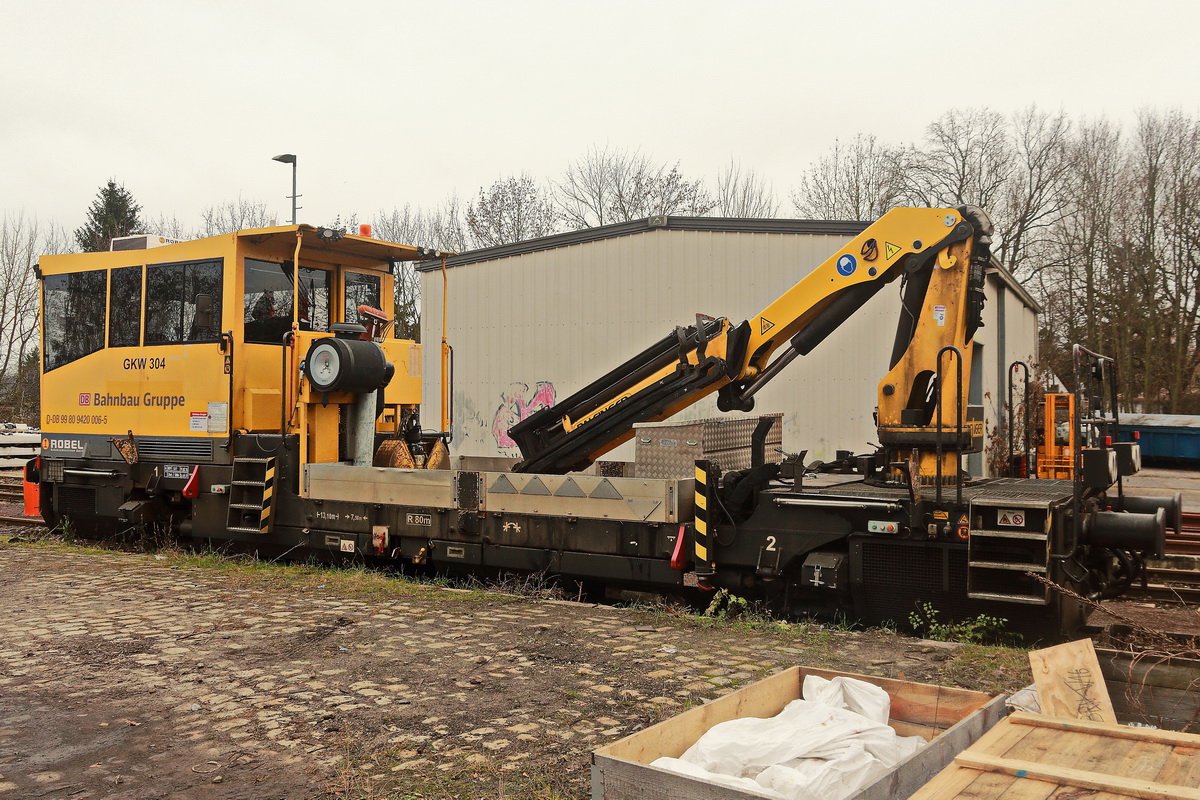 Robel Gleisarbeitsfahrzeug BAMOWAG 54.24 (99 80 9420 015-6 D-DB | GKW 310) passiert die Bahnsteige von Magdeburg Hbf in südwestlicher Richtung.