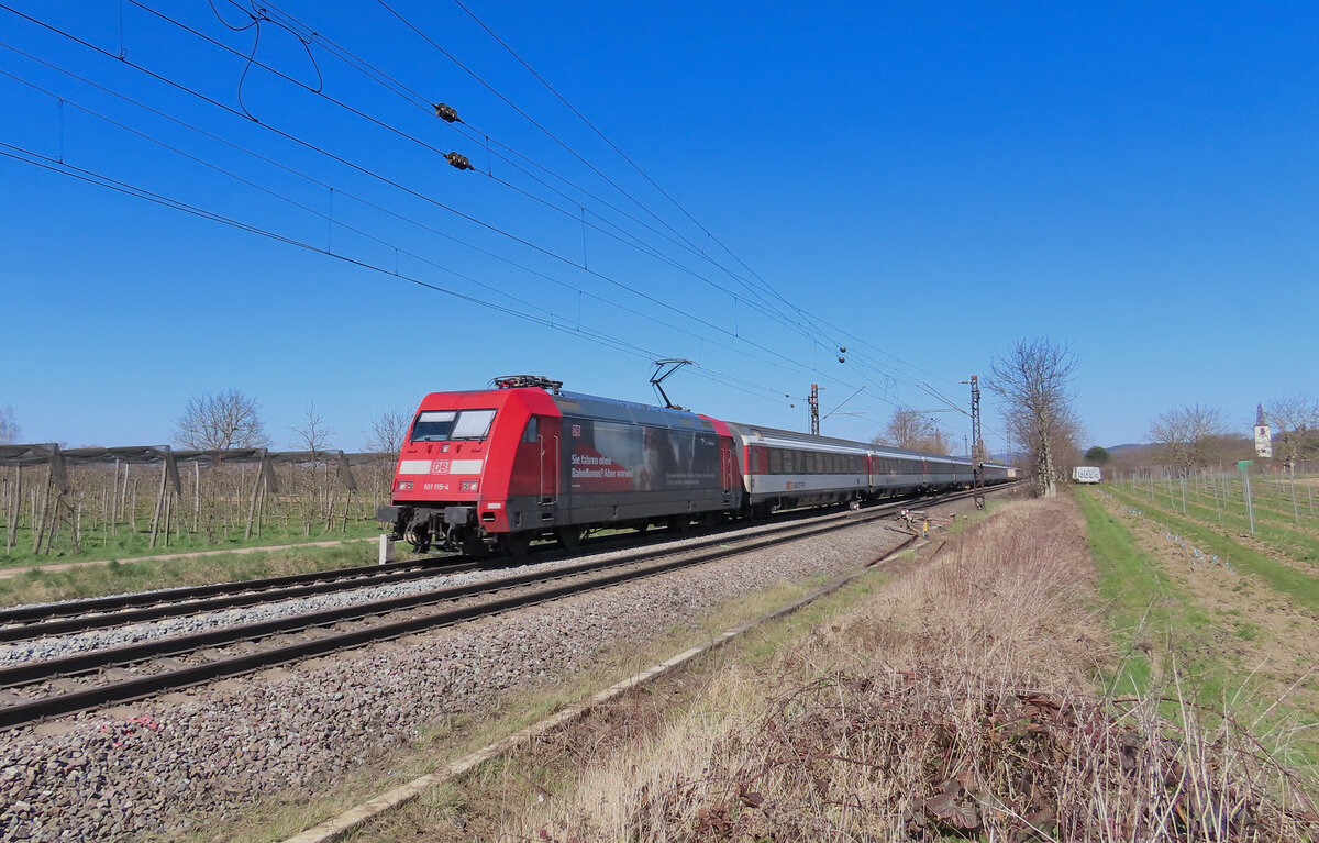 Denzlingen - 19. März 2025 : "Bahn Bonus" Werbelok 101 115 am EC 7 von Hamburg-Haarburg nach Interlaken Ost. Link zum Video : https://www.youtube.com/watch?v=gxd9f3B9Tjs