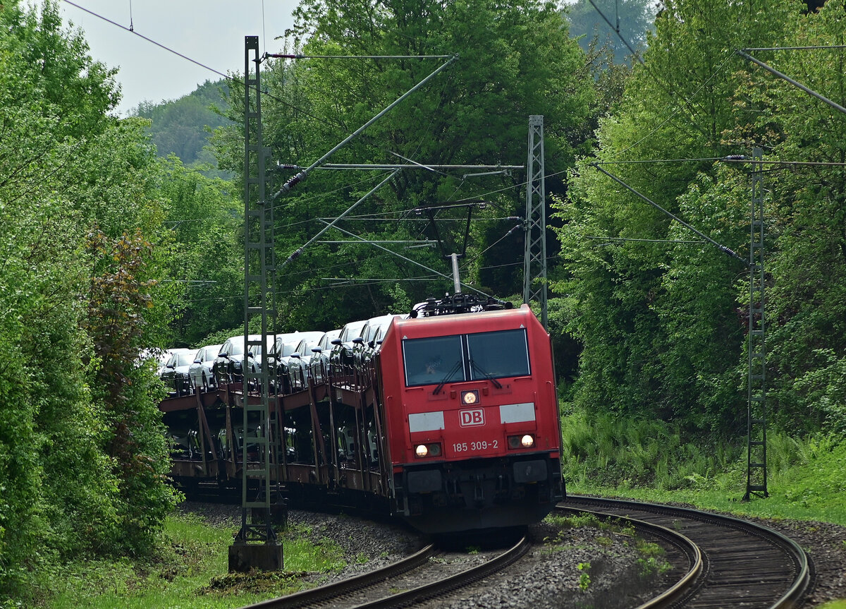 Hinter der S-Bahn kam im Abstand der Audizug gezockelt, am Mittwoch den 5.Mai 2022 war es die 185 309-2 die als Zugmaschine ihr Werk tat.