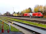 152 134-3 kommt zwei Tage nach dem sie mit einem beladenen Audizug gen Norden gefahren ist mit einem Leerzug nach Bad Friedrichshall Hbf nun durch Neckargerach wieder zurück. 30.11.2022