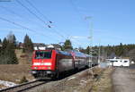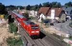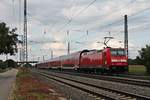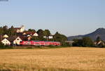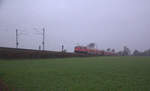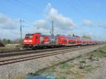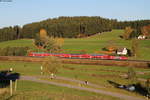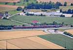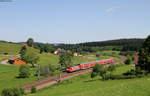 So konnte ich vom Hausberg Engens eine Doppelstock-Garnitur mit 146 229-0, mit Werbung für das Europa-Park-Kombi-Ticket, von DB Regio Baden-Württemberg als RE 4716 von Konstanz nach Karlsruhe Hbf im Tal aufnehmen, der den Bahnhof Welschingen-Neuhausen auf der Bahnstrecke Offenburg–Singen (Schwarzwaldbahn (Baden) | KBS 720) durchfährt.