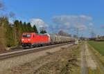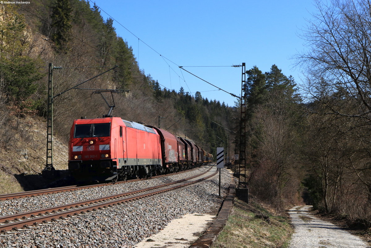 185 362-1 mit dem EZ 52098 (Villingen(Schwarzw)-Kornwestheim Rbf) bei Talmühle 24.3.21