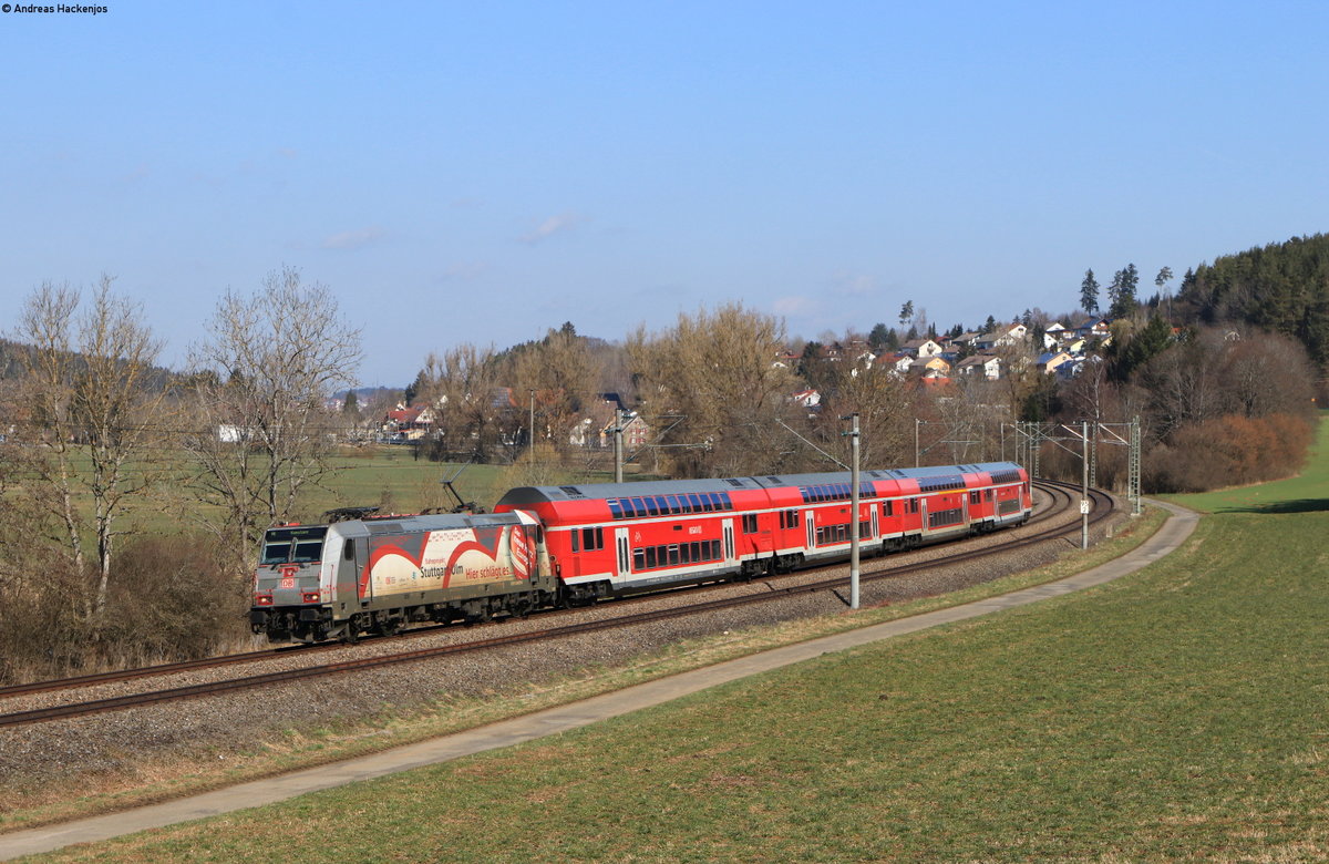 146 246 DB Regio  Bahnland Bayern - Zeit für dich  mit RE 4858 (München Hbf - Nürnberg Hbf) bei Batzhausen, 10.10.2021