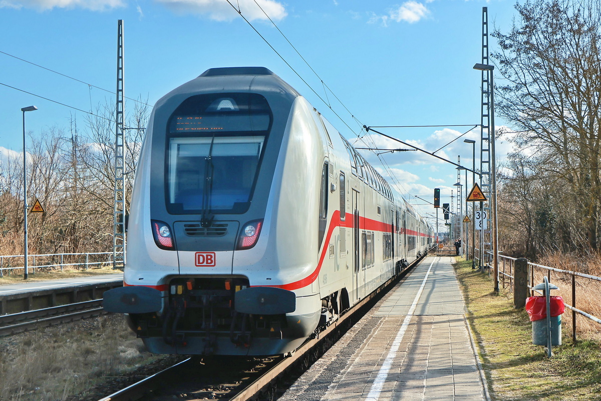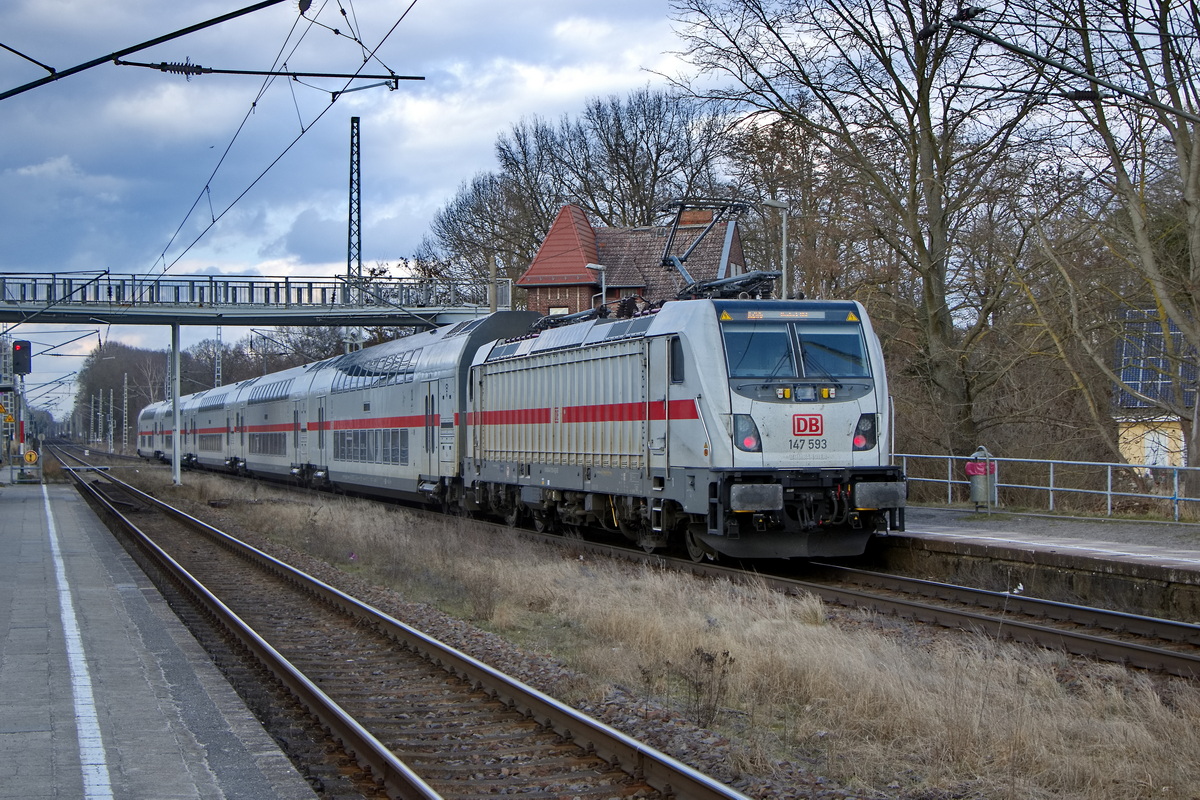 Im Bild ein IC2 gezogen von 147 578-9 aus Richtung Singen der hinunter nach Stuttgart rollt. Wohl gab es Saharastaub nach den Frontscheiben zu urteilen.