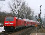 146 235-7 mit dem RE4761 (Karlsruhe Hbf-Villingen(Schwarzw)) bei der Einfahrt St.Georgen(Schwarzw) 4.4.09. Dies ist der letzte Zug vor der Nachtruhe. Abfahrt um 0.23 Uhr