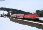 146 235-7 + 146 116-9 mit dem "Sixpack" IRE 5191 (Karlsruhe Hbf - Kreuzlingen) am 24. Januar 2010 bei der Durchfahrt Mühlhausen.