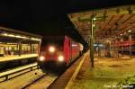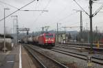 185 013-0 mit dem FZT55834 (Villingen-Offenburg Gbf) trifft auf 101 034-7 "In Form" mit dem IC 2005 (Emden-Konstanz) in St.Georgen(schwarzw) 29.1.10