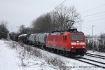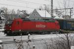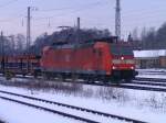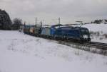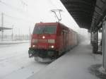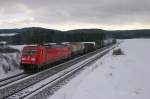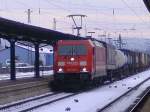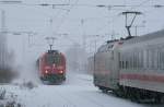 185 013-0 mit dem FZT55834 (Villingen-Offenburg Gbf) trifft auf 101 034-7  In Form  mit dem IC 2005 (Emden-Konstanz) in St.Georgen(schwarzw) 29.1.10