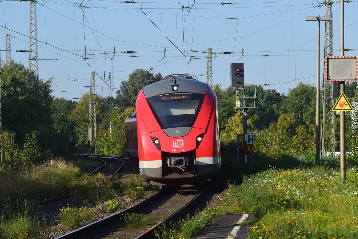 Am 12.03.2026 begegnen sich zwei Züge der RB 33 im Bahnhof Lindern: Links 1440 371 nach Heinsberg, daneben trifft 1440 228 auf dem Weg von Essen-Steele nach Aachen ein. Das Bahnhofsgebäude im Hintergrund geht in seinen Ursprüngen auf das Jahr 1852 zurück.