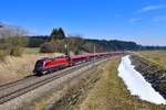 Mit RJX 63 nach Budapest-Keleti pályaudvar durcheilt 1116 210 am 30. Juni 2019 Westerstetten in Richtung Ulm.