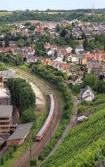 182 597-5 (Siemens ES64U2-097) der Mitsui Rail Capital Europe GmbH (MRCE), im Dienste der Abellio Rail Baden-Württemberg GmbH (Ersatzzug), als RE 95905 (RE10b) von Heilbronn Hbf nach Tübingen Hbf durchfährt den Bahnhof Asperg auf der Bahnstrecke Stuttgart–Würzburg (Frankenbahn | KBS 780).