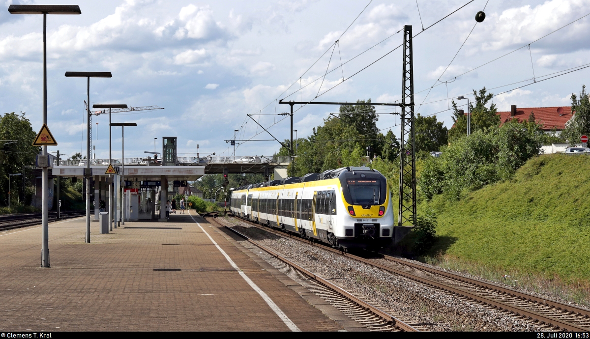 Nachschuss auf 8442 314 und 8442 807 (Bombardier Talent 2) der Abellio Rail Baden-Württemberg GmbH als RE 19624 (RE17b) von Stuttgart Hbf nach Heidelberg Hbf bzw. RB 19524 (RB17a) nach Pforzheim Hbf, die den Bahnhof Asperg auf der Bahnstrecke Stuttgart–Würzburg (Frankenbahn | KBS 780) durchfahren.