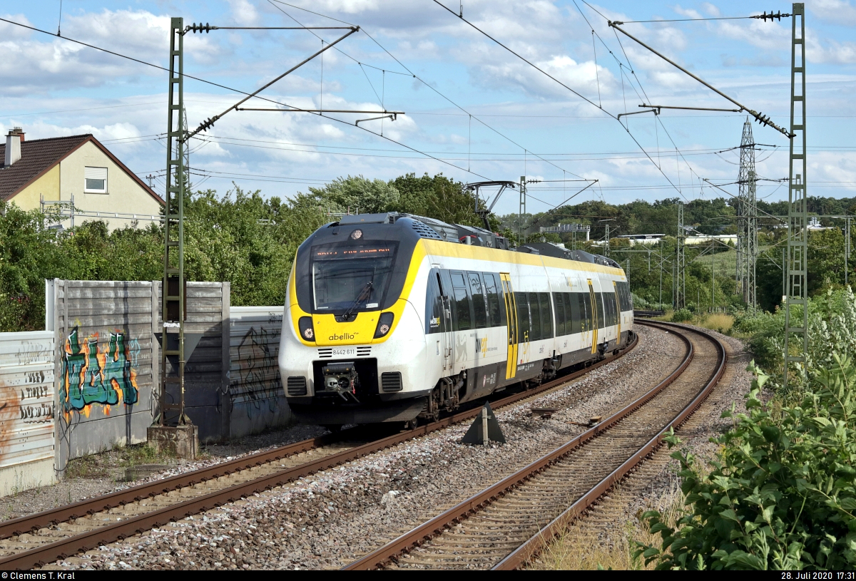 8442 611 (Bombardier Talent 2) der Abellio Rail Baden-Württemberg GmbH als RB 19526 (RB17a) von Stuttgart Hbf nach Pforzheim Hbf durchfährt den Bahnhof Asperg auf der Bahnstrecke Stuttgart–Würzburg (Frankenbahn | KBS 780).
