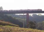 Über das Tal der Rems - Zwischen Waiblingen und der Station Neustadt-Hohenacker überquert die Murrbahn auf einem Viadukt das hier eingeschnittene Remstal.
