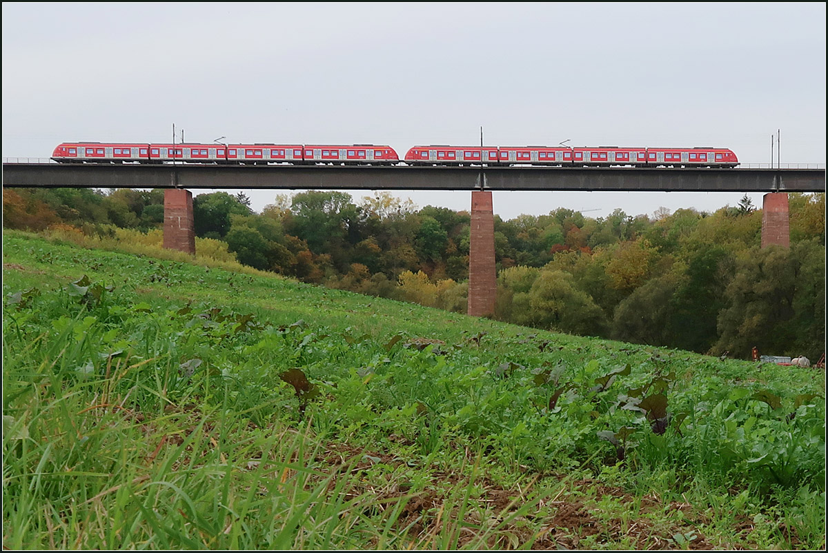 noch eine weitere Version des Remstalviaduktes der Murrbahn bei Waiblingen. Hier habe ich den S-Bahnzug etwas näher herangeholt.