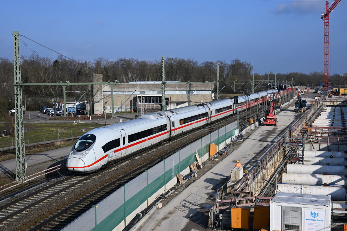 ... blickt der Velaro D auf die für seine Fähigkeiten recht langsame Strecke auf die er hier geführt wird. An der S-Bahnstation Rommelshausen.