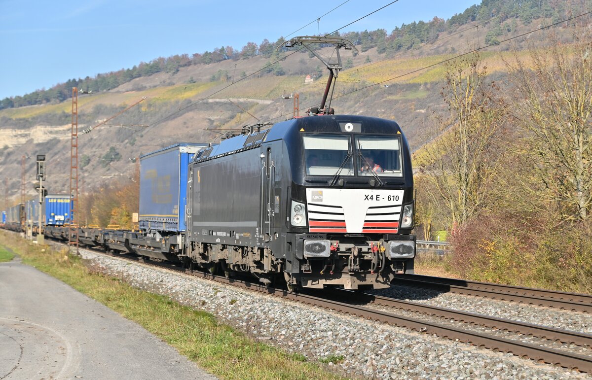 X4E 610 kommt am Mittag des 9.11.2021 bei Thüngersheim gen Würzburg gefahren.