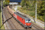 Mit einem KLV am Haken kommt die ÖBB 1293 185 bei Thüngersheim am Dienstag den 9.11.2021 gen Würzburg gefahren.