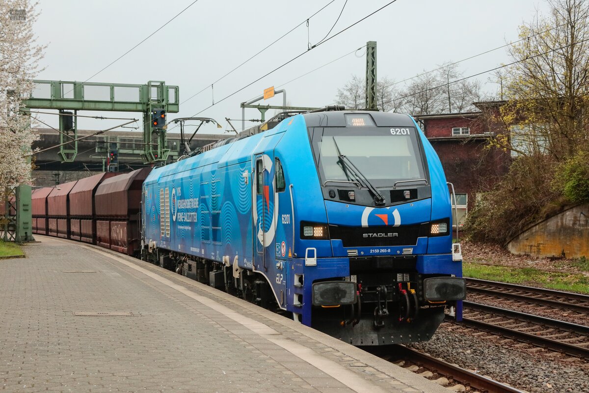 Komplettansicht der 159 229-4 samt ihrem Schnittholzzug in Thüngersheim gen Retzbach Zellingen fahrend. 26.4.2022
