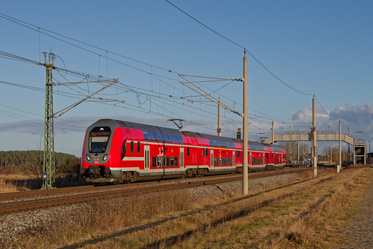 Ein vom 445 046 geführter RE54 nach Bamberg durchfährt hier gerade Thüngersheim gen Würzburg Hbf seinem nächsten Halt am Dienstag den 19.7.2022