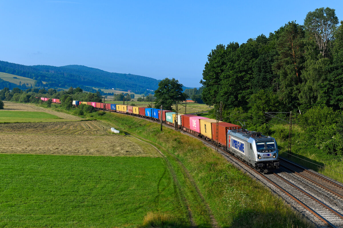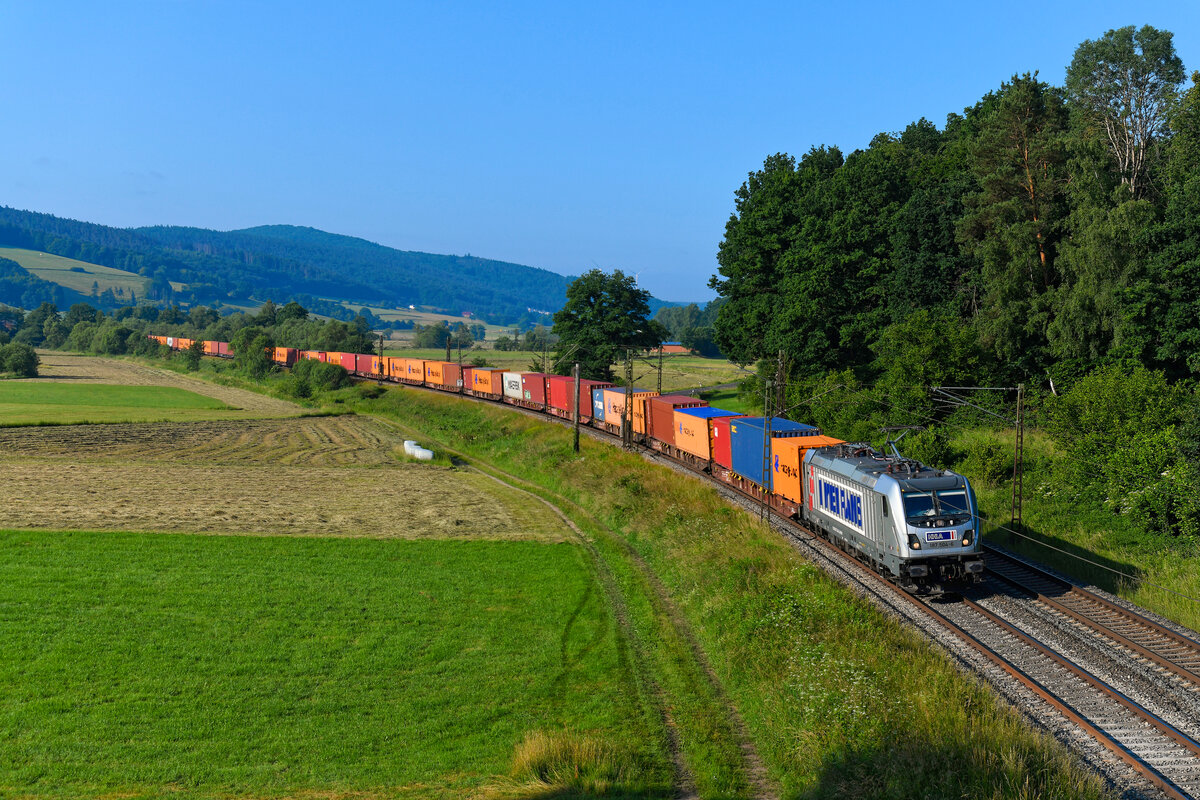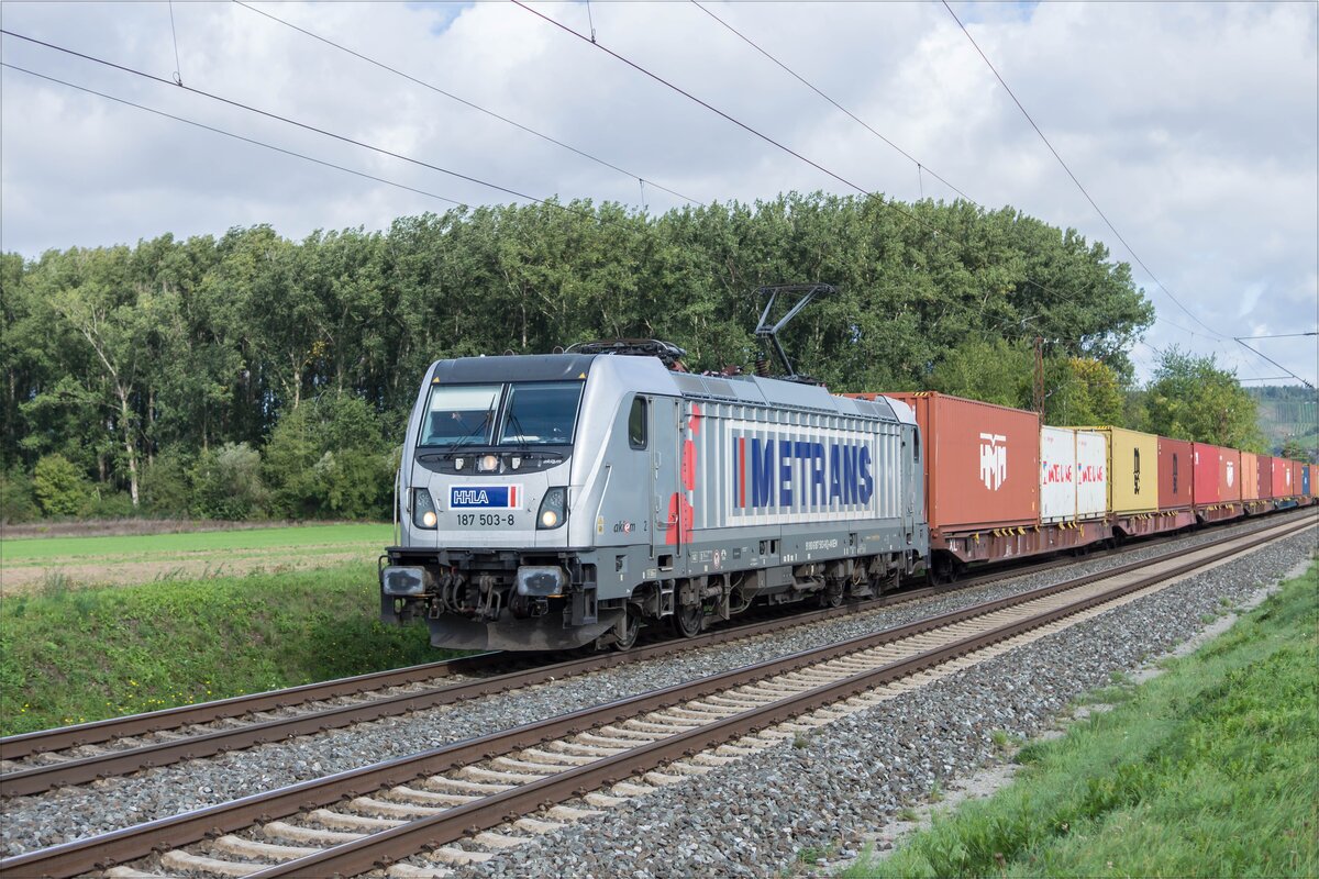 187 511-1 der Metrans Rail durchfährt den Bahnhof Neustadt Aisch bei leichtem Regen, aufgenommen am 23.10.2020.