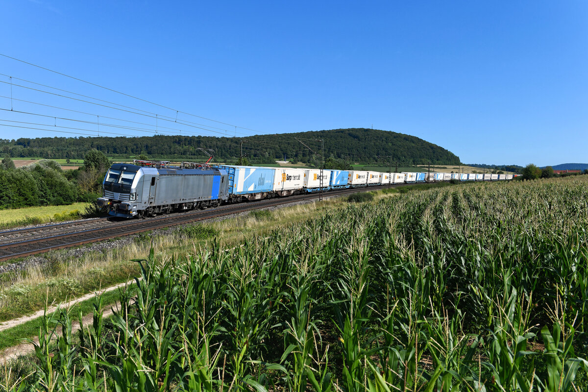 Zum Aufnahmezeitpunkt war die 6193 116 erst wenige Wochen im Fahrzeugbestand der Railpool GmbH. Erster Mieter ist Ecco-Rail. Am 11. August 2023 konnte der Vectron bei Wettelsheim vor dem Ekol-KLV-Zug von Triest nach Köln Eifeltor beobachtet werden.