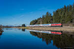 Auch wenn der Zug in der Mitte von einem Baum verdeckt ist und es sich "nur" um einen Nachschuss handelt, so empfinde ich die Gesamtatmosphäre in diesem Bild doch als herrlich und sehenswert: 218 489 am Mittag des sommerlichen 17. August 2014 mit ihrer aus n-Wagen und einem Karlsruher Kopf gebildeten Regionalbahn nach Füssen vor dem Hopfensee. Im Hintergrund lässt sich auch etwas oberhalb der Lok Schloss Neuschwanstein erkennen. maxismodellbahn