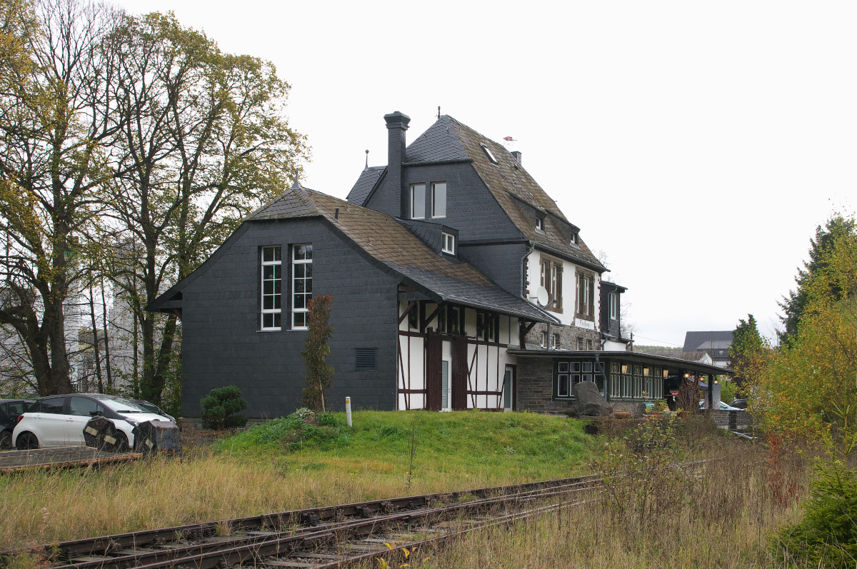 Der Ort Dhronecken an der Hunsrückquerbahn hat noch weniger als 200 Einwohner. Daher scheint der Bahnhof etwas überdimensioniert. Allerdings gibt es in Dhronecken noch einen zweiständigen Lokschuppen und einen Wasserturm. Bahnstrecke 3021 Langenlonsheim - Hermeskeil. Der Bahnbetrieb ruht aber die IG Nationalparkbahn möchte wieder einen Tourismusverkehr auf der Strecke etablieren. 22.10.2017