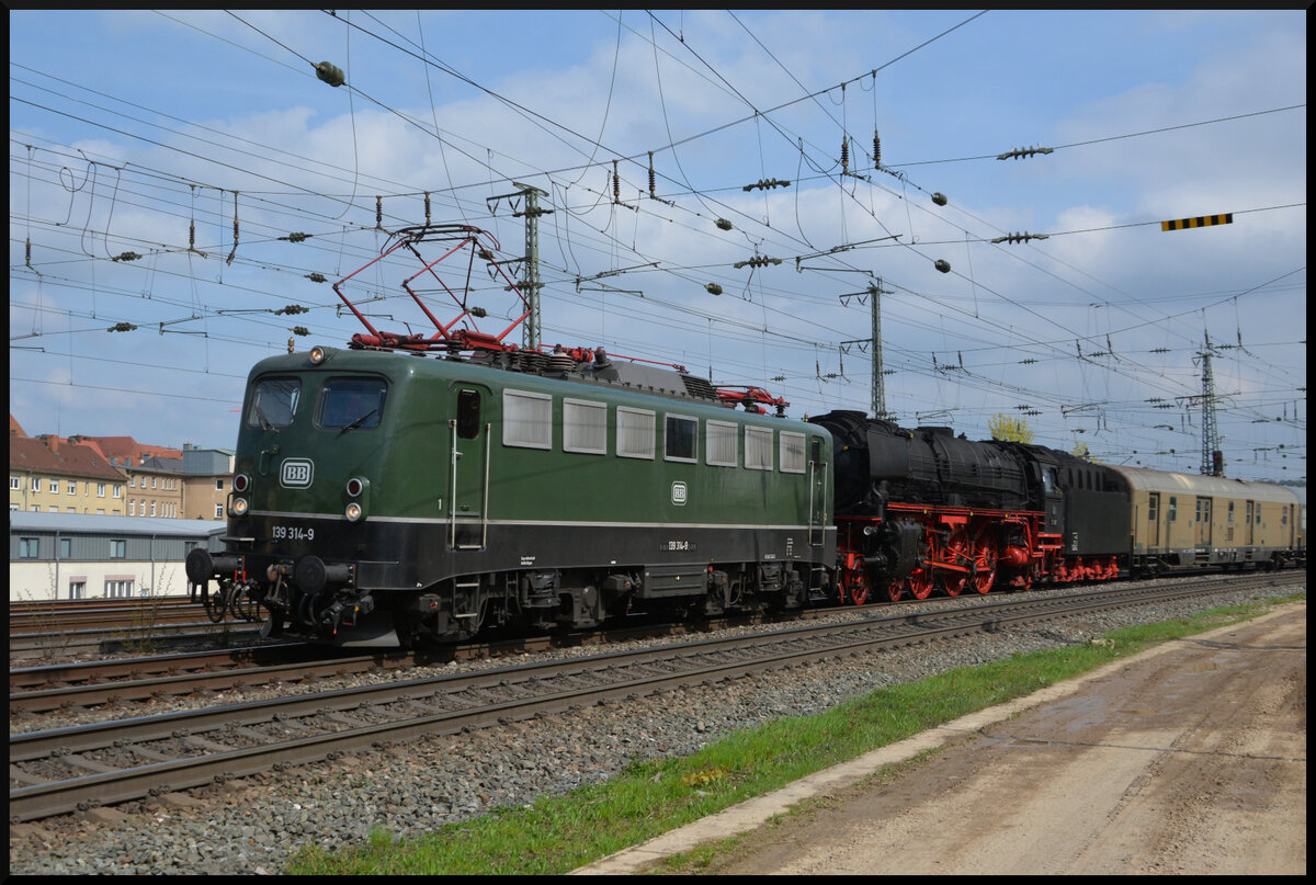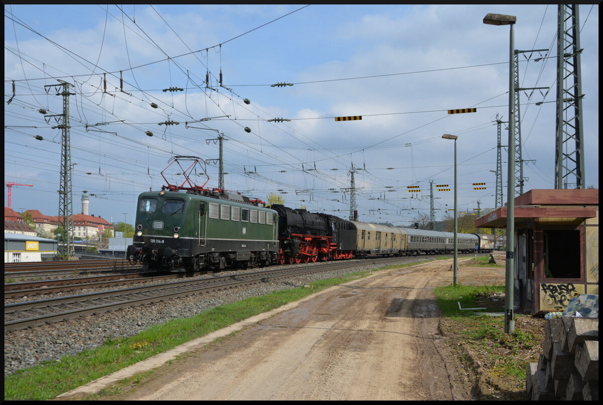 GmP a la BayernBahn: Anlässlich der Museumstage am 18. & 19. April 2026 im DGEG Eisenbahnmuseum Bochum in Bochum-Dahlhausen überführte das Bayerische Eisenbahnmuseum Nördlingen (BEM) die Schnellzugdampflok 01 180 als Gastlokomotive von Bayern nach Nordrhein-Westfalen. Eingereiht in den bekannten Henkelzug fuhr die Dampflok am 15.04.2026 gemeinsam mit der BayernBahn 139 314 und einem ehemaligen Postwagen als Begleiter sowie zwei Silberlingen von Nördlingen über Gunzenhausen, Würzburg und Darmstadt-Kranichstein nach Bochum-Dahlhausen. Der Zug konnte bei der Überführungsfahrt, sozusagen als Güterzug mit Personenbeförderung (GmP) - einer der beiden Silberlinge war tatsächlich mit Personen besetzt -, in Würzburg beobachtet werden. Meine Grüße gehen hiermit an das freundliche Zugpersonal zurück. Allzeit gute Fahrt wünsch' ich! Matthias Kümmel
