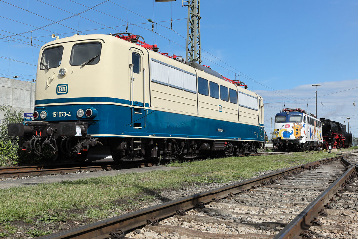 Nachschuss auf 151 001 in Düsseldorf Hamm auf den Weg Richtung Düsseldorf Hbf. Entgegen kommt 462 065 als RE4. Zwischen den beiden Fahrzeugen liegen ca 45 Jahre. Düsseldorf 23.12.2025