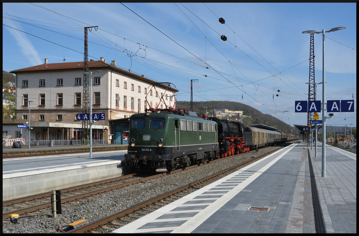 GmP a la BayernBahn: Anlässlich der Museumstage am 18. & 19. April 2026 im DGEG Eisenbahnmuseum Bochum in Bochum-Dahlhausen überführte das Bayerische Eisenbahnmuseum Nördlingen (BEM) die Schnellzugdampflok 01 180 als Gastlokomotive von Bayern nach Nordrhein-Westfalen. Eingereiht in den bekannten Henkelzug fuhr die Dampflok am 15.04.2026 gemeinsam mit der BayernBahn 139 314 und einem ehemaligen Postwagen als Begleiter sowie zwei Silberlingen von Nördlingen über Gunzenhausen, Würzburg und Darmstadt-Kranichstein nach Bochum-Dahlhausen. Der Zug konnte bei der Überführungsfahrt, sozusagen als Güterzug mit Personenbeförderung (GmP), in Würzburg beobachtet werden.
